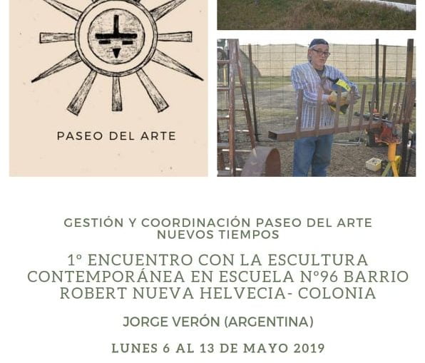 Primer encuentro con la escultura contemporánea en mayo en Nueva Helvecia Archivo - Archive Mayo 2019 Noticias - News 3 de mayo de 2019 Se realizará el Primer encuentro con la escultura contemporánea en la Escuela Nro 96 Barrio Robert en la ciudad de Nueva Helvecia, del departamento de Colonia, en Uruguay ,del 7 al 13 de mayo. Este encuentro ha sido gestionado y será coordinado por Paseo del Arte Nuevos Tiempos, a cargo de