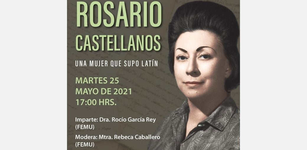 Conferencia: Rosario Castellanos. Una mujer que supo latín en el Museo de la Mujer de México Archivo - Archive Mayo 2021 Noticias - News 24 de mayo de 2021 El Museo de la Mujer de México invita a la conferencia virtual en conmemoración de su natalicio: Rosario Castellanos. Una mujer que supo latín, que será por la Dra. Rocío García Rey (FEMU) y moderada por la Mtra. Rebeca Caballero (FEMU). En esta charla se dará a conocer cómo tanto en