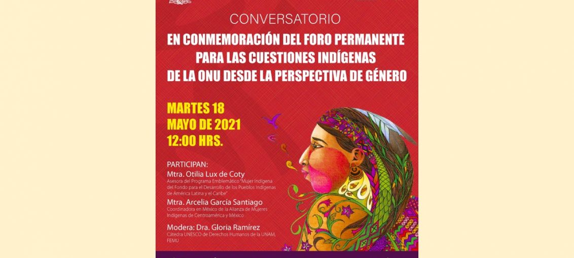 Museo de la Mujer de México: cuestiones indígenas con perspectiva de género Archivo - Archive Mayo 2021 Noticias - News 13 de mayo de 2021 El Museo de la Mujer de México invita a este conversatorio en conmemoración del Foro Permanente para las Cuestiones Indígenas de la ONU, desde la perspectiva de género. Participan: Mtra. Otilia Lux de Coty, Asesora del Programa Emblemático “Mujer Indígena del Fondo para el Desarrollo de los Pueblos Indígenas de América