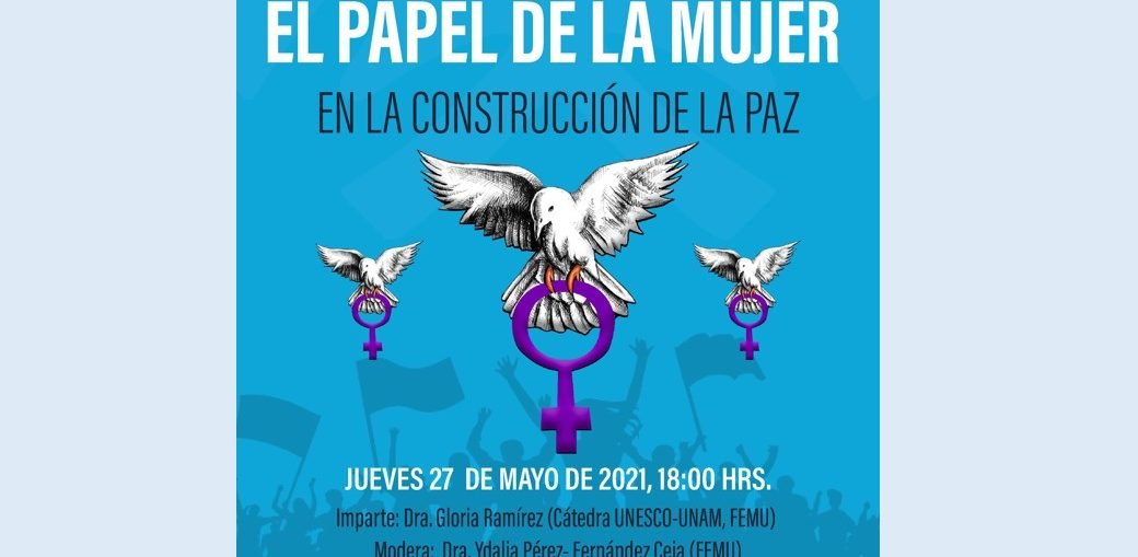 Conferencia: El papel de la mujer en la construcción de la paz en el Museo de la Mujer de México Archivo - Archive Mayo 2021 Noticias - News 24 de mayo de 2021 El Museo de la Mujer de México invita a la conferencia en conmemoración del Día Internacional del Personal de Paz de las Naciones Unidas: El papel de la mujer en la construcción de la paz, que impartirá la Dra. Gloria Ramírez (Cátedra Unesco - UNAM, FEMU); modera la Dra. Ydalia