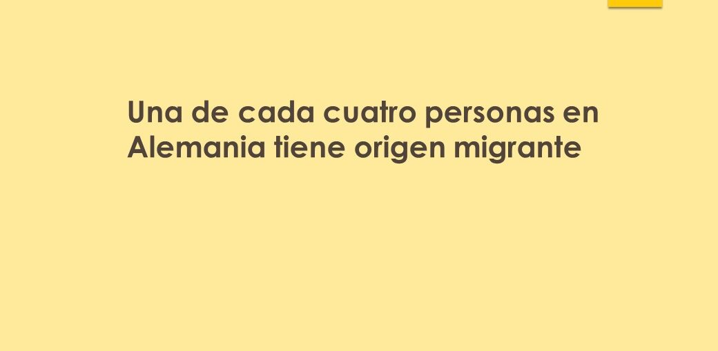Una de cada cuatro personas en Alemania tiene origen migrante Archivo - Archive Mayo 2025 Noticias - News 22 de mayo de 202525 de mayo de 2025 Fráncfort, 22 may (dpa) - Alrededor de 21,2 millones de personas residentes en Alemania fueron contabilizadas como de origen migrante en 2024, lo que representa un aumento del 4 % respecto al año anterior, según cifras oficiales publicadas hoy. La Oficina Federal de Estadística (Destatis) informó que esta cifra equivale al 25,6 % de la
