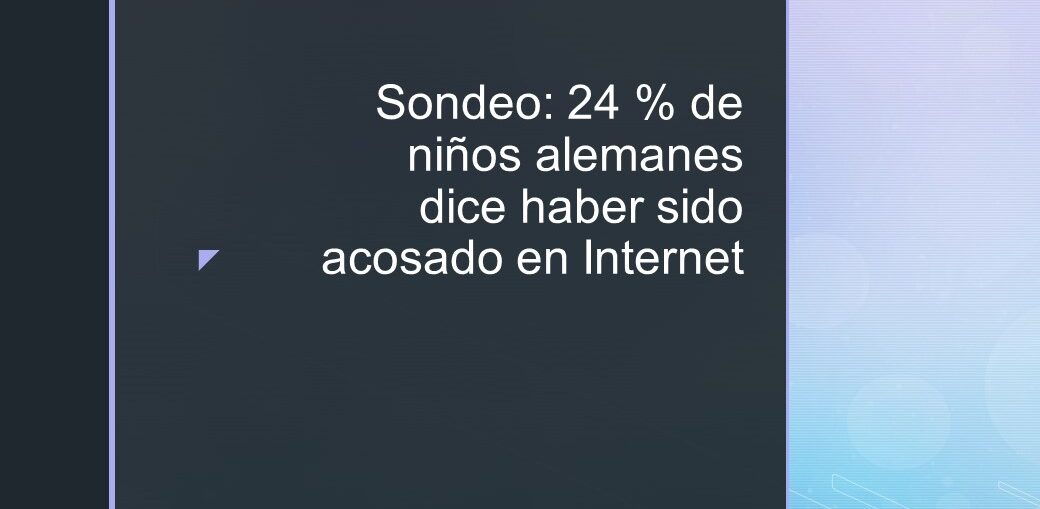 Sondeo: 24 % de niños alemanes dice haber sido acosado en Internet Archivo - Archive Mayo 2025 Noticias - News 13 de mayo de 202516 de mayo de 2025 Düsseldorf (Alemania), 13 may (dpa) - El 24 % de los niños en Alemania experimentó insinuaciones con motivación sexual por parte de adultos en Internet, de acuerdo con la encuesta anual para la Autoridad de Medios de Comunicación del estado federado de Renania del Norte-Westfalia. Los abordajes se producen en redes sociales o juegos en línea. Entre los menores