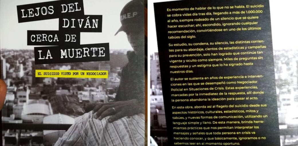 Lejos del diván cerca de la muerte. El suicidio visto por un negociador: libro de Francisco Rabadán Archivo - Archive Noticias - News Número 14 - Marzo 2022 8 de marzo de 20229 de marzo de 2022 Lejos del diván cerca de la muerte. El suicidio visto por un negociador, es un libro escrito por Francisco S. Rabadán y publicado en la provincia de Córdoba. El autor es oriundo del departamento de San Rafael en Mendoza y está radicado en la provincia de Córdoba. LEJOS DEL DIVÁN, CERCA