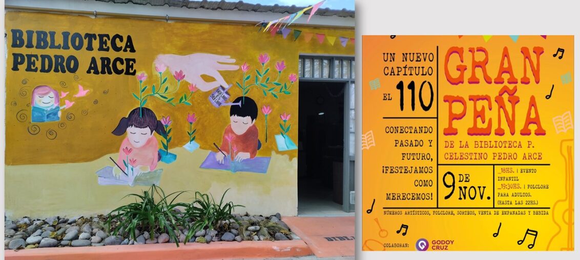 Se realiza una gran peña por los 110 años de la Biblioteca Popular Pbro. Pedro Arce el 9 de noviembre Archivo - Archive Noticias - News Número 22 - Noviembre 2024 5 de noviembre de 2024 Con motivo de celebrarse los 110 años de la Biblioteca Popular Pbro. Pedro Arce de Godoy Cruz, la entidad ha preparado diversas actividades que se realizarán el 9 de noviembre en la sede de la misma. Para conocer los detalles del evento y lo realizado durante este año, Revista Diafanís conversó