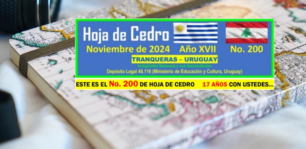 «Hoja de Cedro» de noviembre: el número 200 cumpliendo 17 años de difusión Archivo - Archive Noticias - News Número 22 - Noviembre 2024 2 de noviembre de 2024 HOJAdeCEDRO.11.2024 Hoja de Cedro, la conocida publicación artesanal sobre el Líbano, inmigrantes libaneses y descendientes, que publica desde Tranqueras, Uruguay, su creador y productor José María Almada Sad, publicó su ejemplar del mes de noviembre de 2024, Año XVII, en su número 200; cumpliendo 17 años. La publicación acompaña a la diáspora