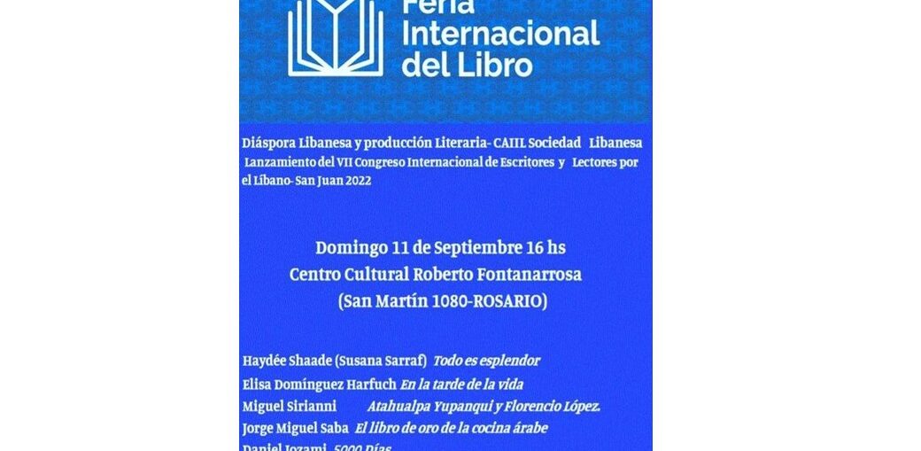 C.A.I.I.L se presenta en la Feria Internacional del Libro de Rosario 2022 Archivo - Archive Noticias - News Setiembre 2022 9 de septiembre de 202210 de septiembre de 2022 Rosario (Argentina). 08 set (CAIIL) El 11 de setiembre en el marco de la Feria Internacional del Libro de Rosario, en horario de 16 a 17 hr de Argentina, se presenta el Centro Argentino de Investigación sobre la Inmigración Libanesa (CAIIL) y la Sociedad Libanesa de Rosario, para compartir tanto los