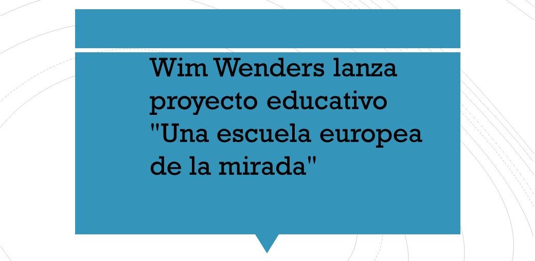Wim Wenders lanza proyecto educativo «Una escuela europea de la mirada» Archivo - Archive Noticias - News Setiembre 2022 23 de septiembre de 2022 Düsseldorf (Alemania), 23 sep (dpa) - El laureado cineasta alemán Wim Wenders ("París, Texas") inició hoy su proyecto educativo cinematográfico "Una escuela europea de la mirada", con el que se propone entre otras cuestiones enseñar a lidiar con la moderna avalancha de imágenes. "La cuestión más importante con la que se ven confrontados los jóvenes