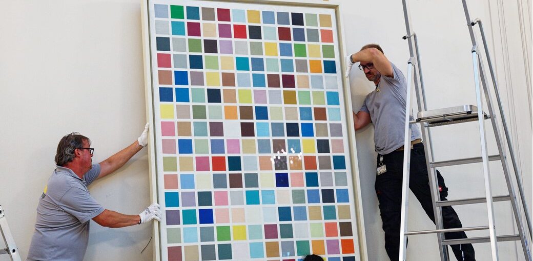 Obra clave del pintor alemán Gerhard Richter será subastada en Londres Archivo - Archive Noticias - News Setiembre 2022 7 de septiembre de 2022 Unos operarios cuelgan el cuadro "192 Farben" (192 colores) de Gerhard Richter en la sucursal de Colonia de la casa de subastas Sotheby's. La obra se subastará en Londres el 14 de octubre. Foto: Henning Kaiser/dpa - Crédito: Henning Kaiser/dpa Colonia (Alemania) / Hamburgo, 1 sep (dpa) - El cuadro "192 Farben" (192